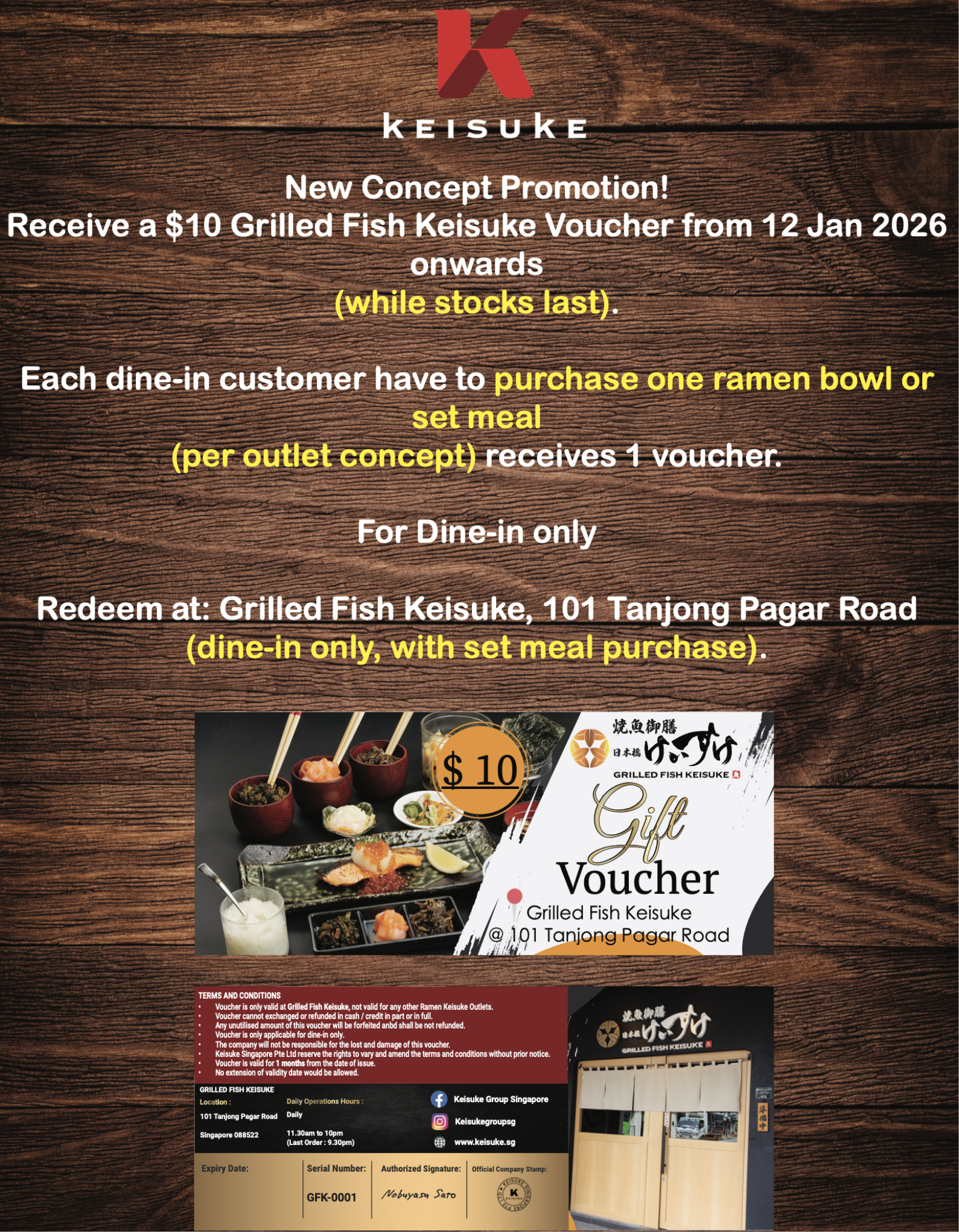 Giving out $10 Grilled Fish Keisuke Voucher!