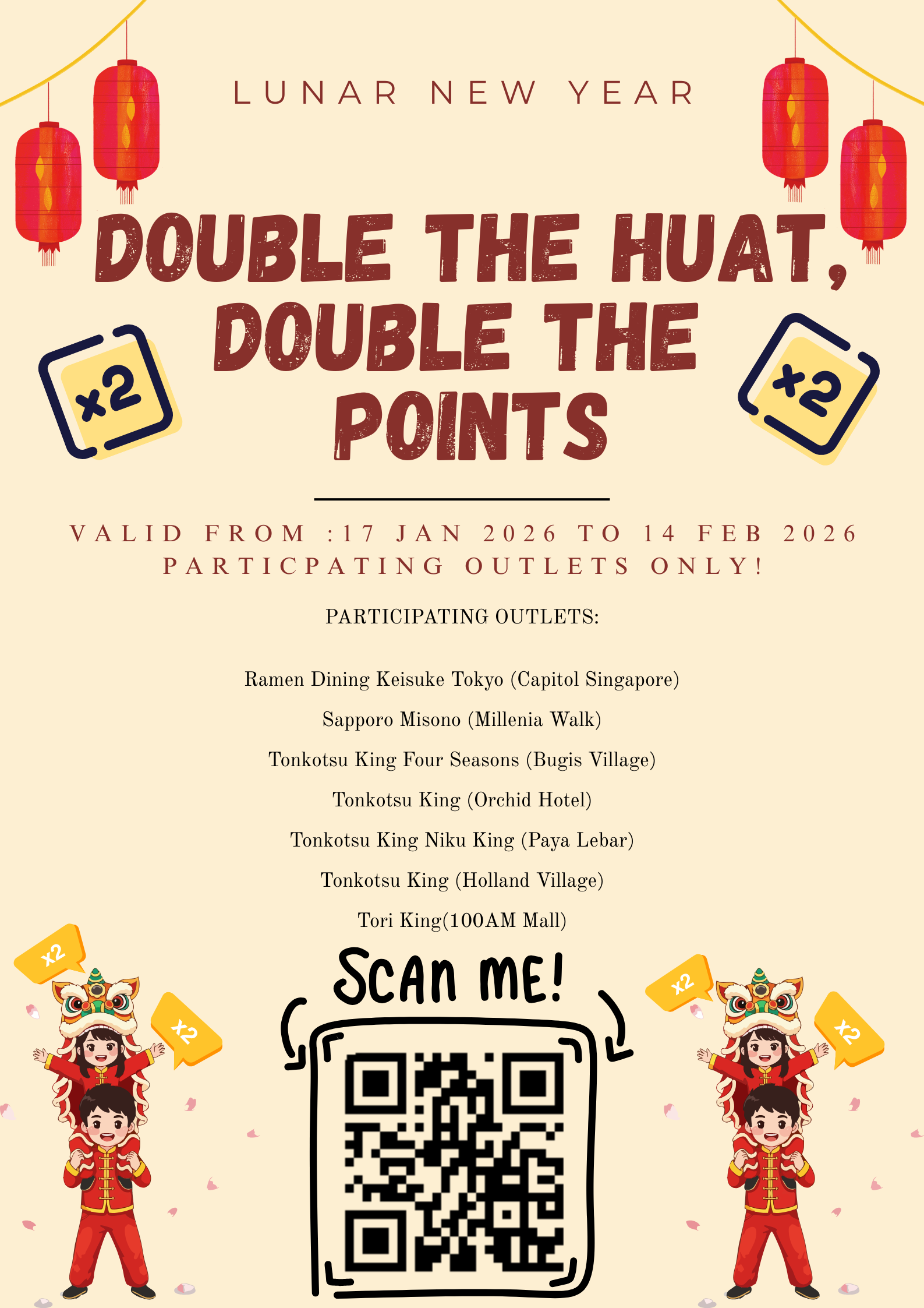 From 17 Jan β 14 Feb 2026, celebrate the festive season with Keisuke and earn DOUBLE POINTS at 7 participating outlets! πβ¨